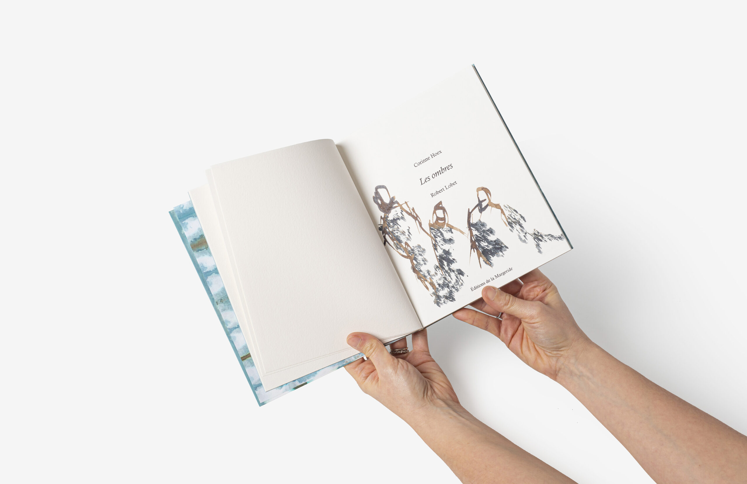 Reliure contemporaine de l’ouvrage “Les ombres”, de Corinne Hoex, illustré par Robert Lobet.