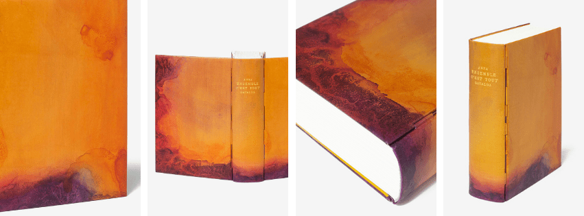 Pour ce type de décor, j’aborde les teintures pour cuir comme une aquarelle. Selon sa vitesse d’absorption, la peau guide le geste : les couleurs se mêlent, se diffusent, s’étirent et dialoguent pour faire naître des effets uniques.