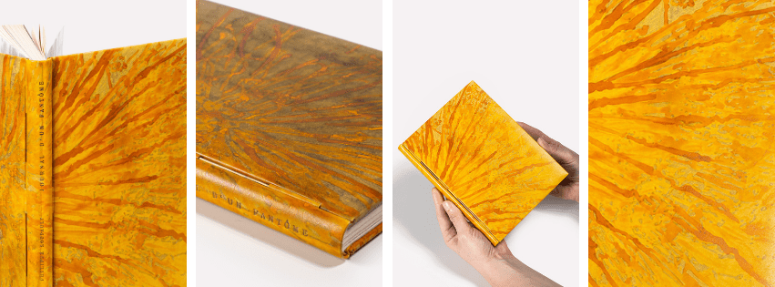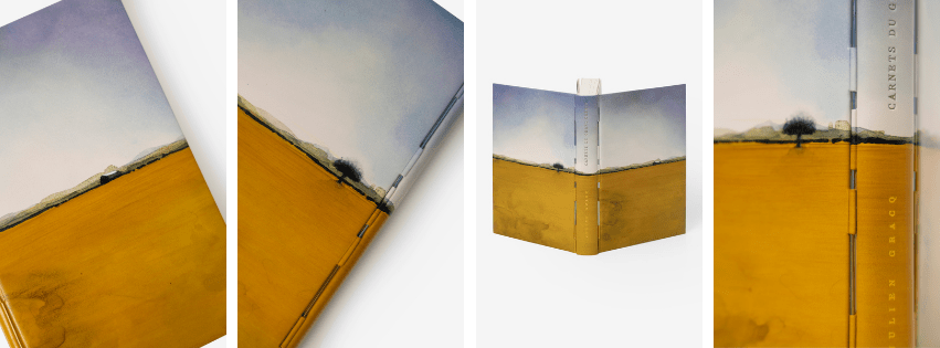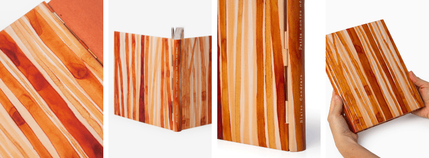 La même année, la Bibliothèque nationale de France, qui suivait mes recherches sur la reliure à tiges, me confie la reliure de L’Emploi du temps de Michel Butor, que je décore de larges bandes peintes au pinceau.