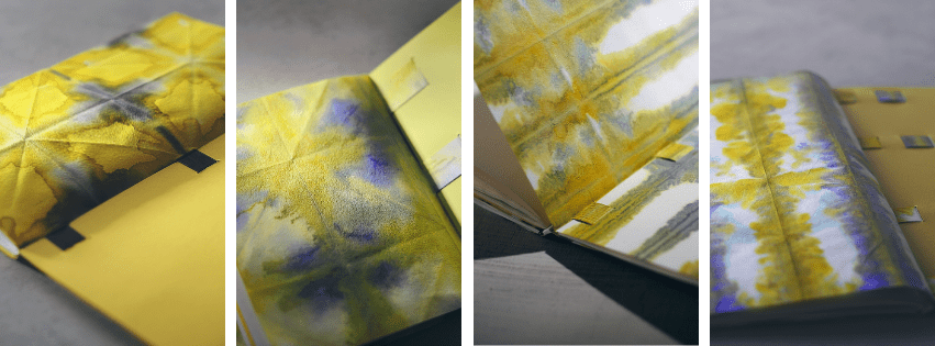 C’est en 2015 que j’ai développé ma propre approche de teinture du papier, en m’inspirant de la technique japonaise appelée orizomegami, qui consiste à tremper dans l’encre une feuille préalablement pliée.