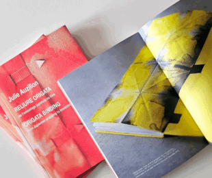 « L’instant du givre », poèmes d’ Hélène Cadou, illustrations des René Bonargent, ed. Indifférences. Commande de la médiathèque de Riom, 2014. La reliure …