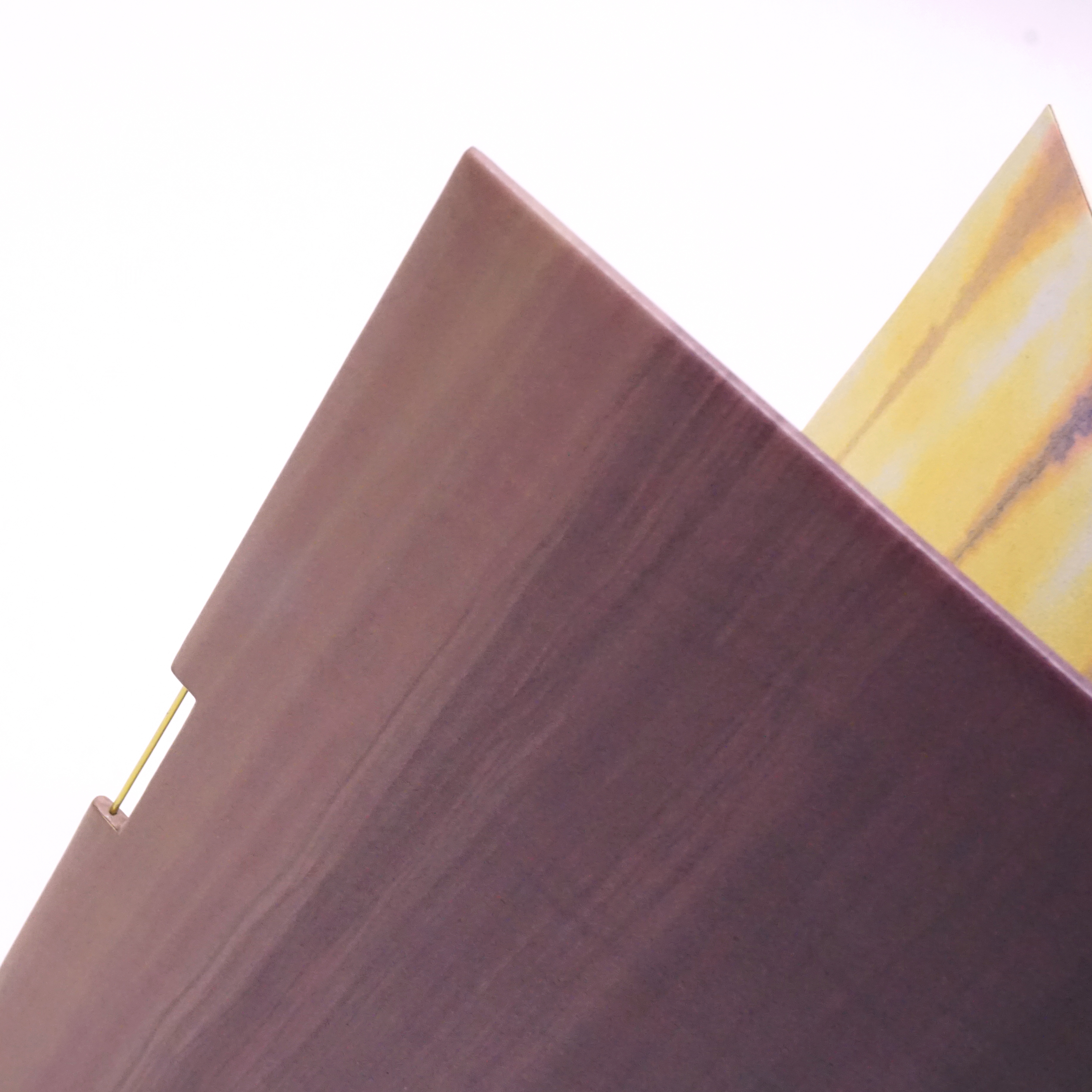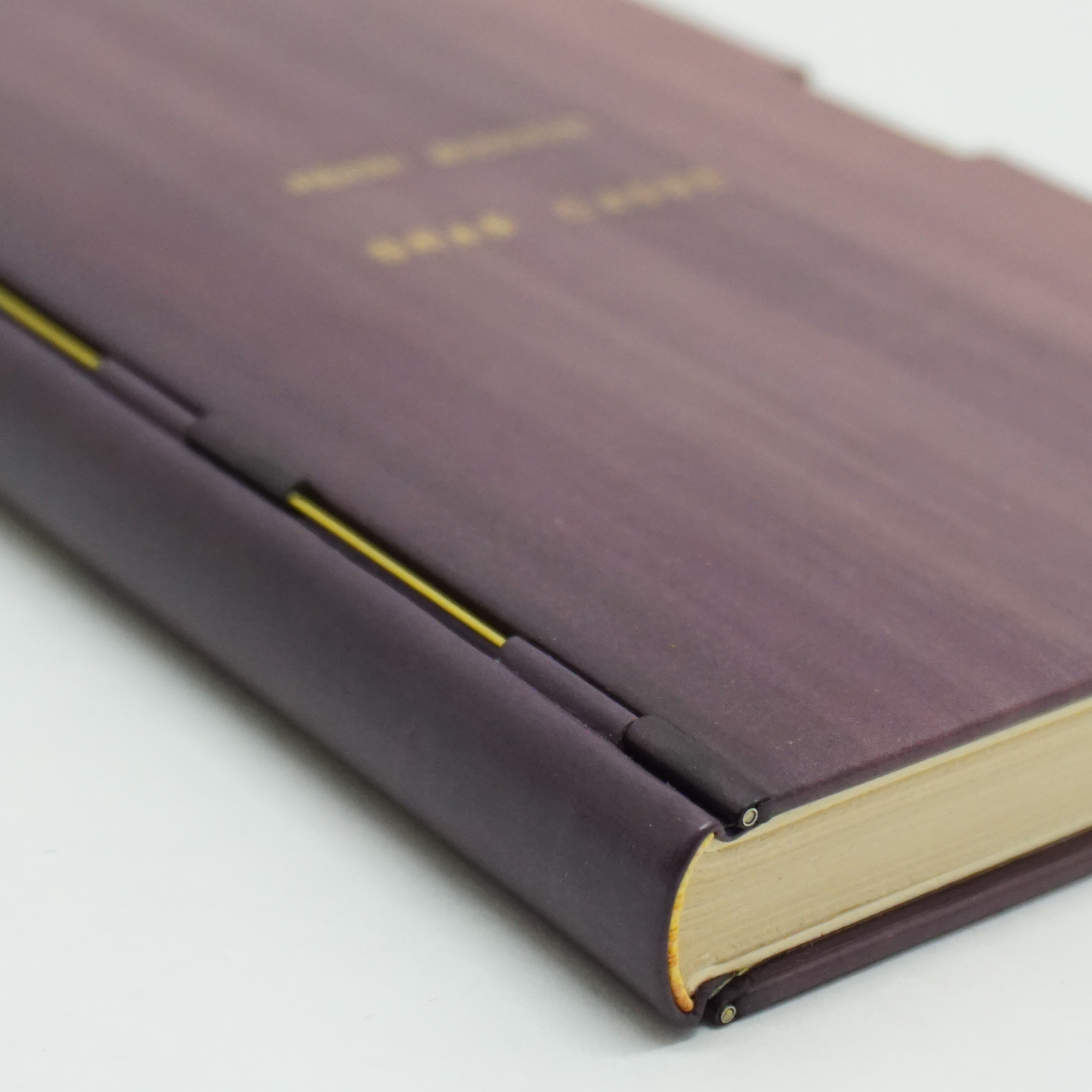 Le papier teinté pour ce livre surgit comme une surprise à l’ouverture de cette reliure très minimaliste.