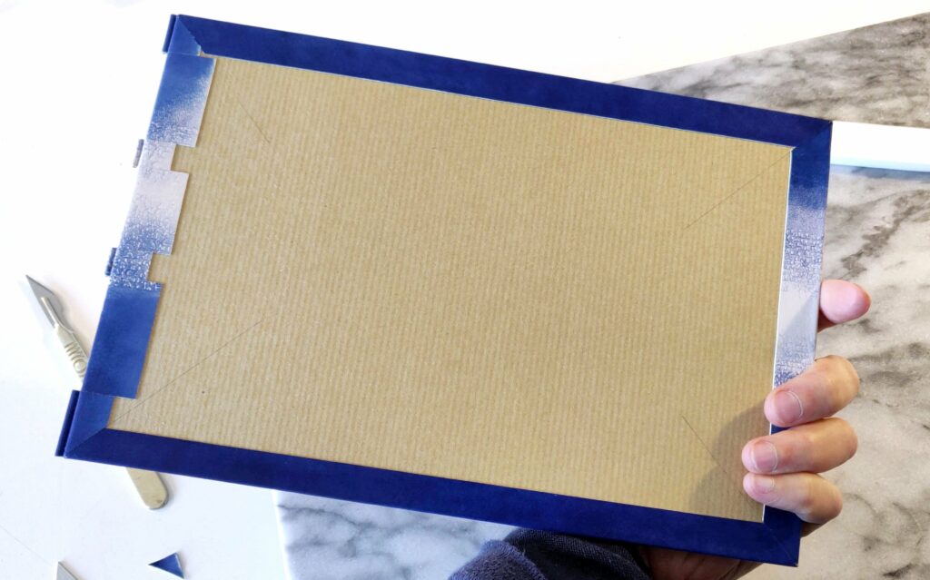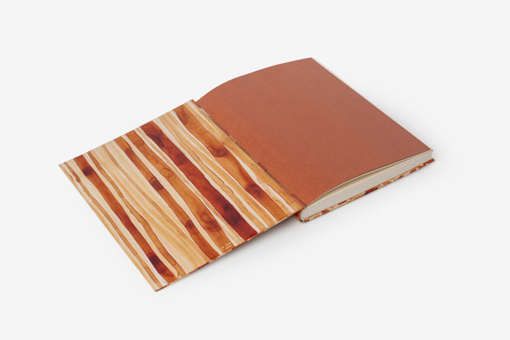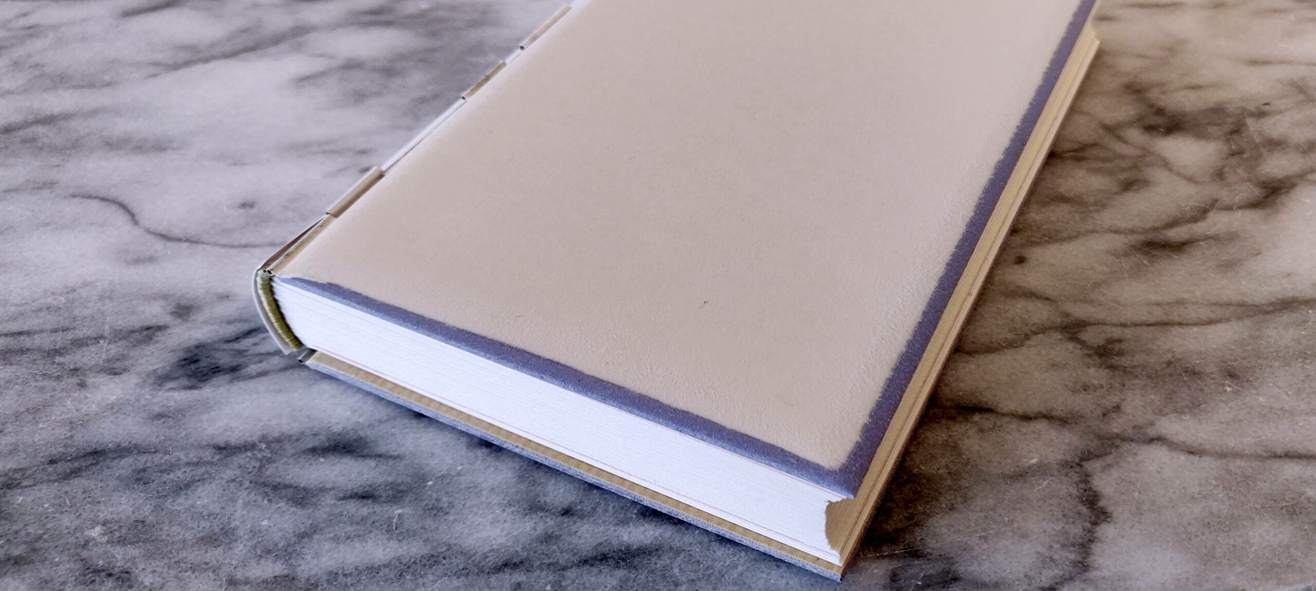 Ainsi, après la « reliure origata » (2017) – souple, légère, en papier, conçue pour de petits ouvrages – je me suis consacrée à la mise au point d’une technique qui réunit tous les codes actuellement usités en reliure – plats cartonnés, dos arrondis, cuir, tranchefiles… – et qui pallie au problème récurrent de la cassure de la charnière.