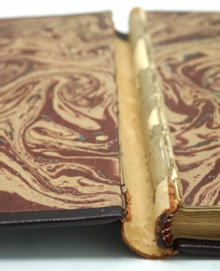 En effet, cette zone particulièrement sollicitée ne repose que sur des ficelles qui servent à fixer les cartons au bloc livre, et une épaisseur de cuir qui les recouvre. Les ficelles sont effilochées afin de ne pas créer de reliefs inesthétiques, et le cuir est aminci pour faciliter l’ouverture de l’ouvrage. Cette méthode traditionnelle est mise à mal par la baisse de qualité des matériaux disponibles aux relieurs, ayant pour conséquence la cassure des ficelles et du cuir, après des années d’utilisation.