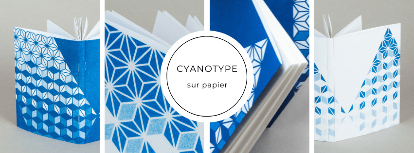 Pour la collection Aizuri-e Maki, j’ai utilisé la technique du cyanotype — un procédé photographique monochrome ancien produisant des images bleu profond — afin de créer un duo de carnets jouant sur le positif et le négatif.