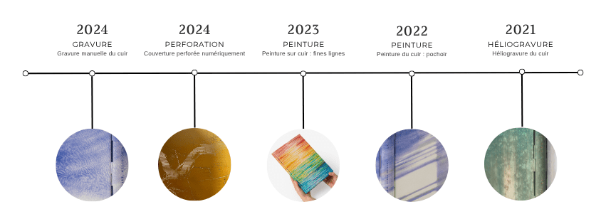 Graphisme Gravure du cuir – 2024 avril 16, 2026 41 Views 0 Comment La technique que j’ai nommée gravure du cuir consiste à dessiner directement sur la peau — en exploitant la souplesse …